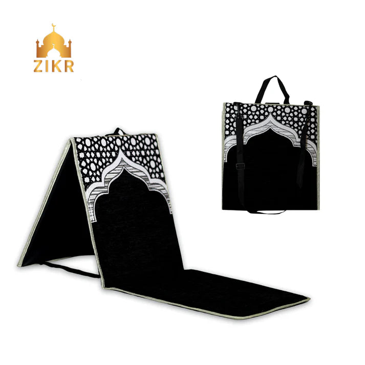The mat features a soft yet durable surface that provides comfortable support during prayer, with a structured fold that helps it stand and fold smoothly. Finished with an elegant Islamic pattern, it offers a clean and respectful design suitable for everyday use.